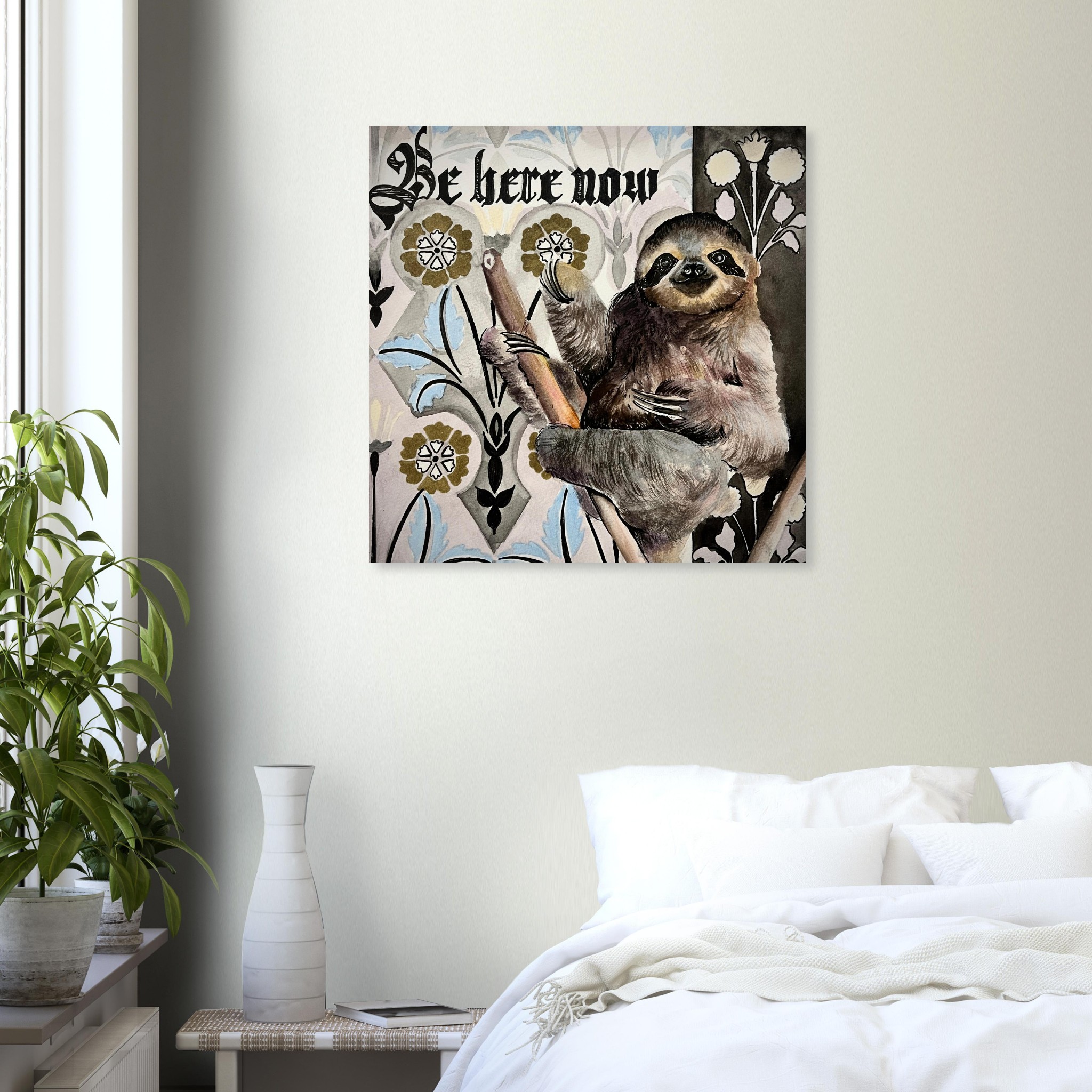 Elevate your space with this enchanting sloth mixed media painting, beautifully surrounded by a delicate woodsy wreath and soft pink florals. This artwork captures the essence of nature and whimsy, making it a perfect addition to any art lover’s collection.